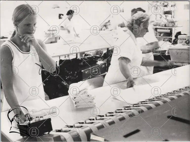 arbete, kvinnor, fabrik, 1900-tal, svartvitt, kontor, papper, maskiner, produktion, historisk, kläder, arbetsmiljö, kontorsarbete, dokument, skrivbord, industri, teamwork, retro, arbetsplats, kontorspersonal, administration