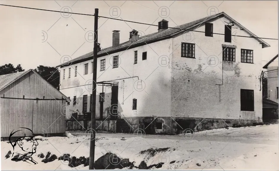 byggnad, hus, fönster, tak, skorstenar, snö, mark, väg, gammal, struktur, arkitektur, svartvit, landskap, utomhus, industriell, historisk, gård, entré, pelare, tegel, betong, takfönster, grå, träd, himmel, linjer, skugga, detaljer, miljö