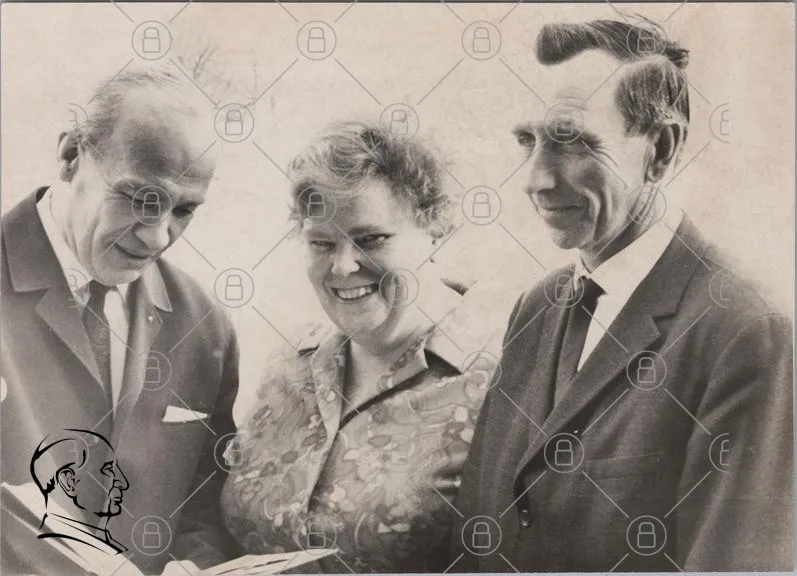 personer, leende, svartvitt, fotografi, man, kvinna, dokument, kläder, 1960-tal, möte, ansikten, gemenskap, tradition, historia, interaktion, vänskap, uttryck, minnen, familj, samarbete, glädje, nostalgi, socialt, kultur, evenemang, samling, presentation, artighet, gest, samtal, uppvaktning