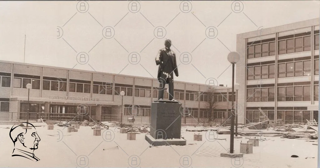 staty, monument, snö, övergiven, byggnad, skola, landskap, vinter, gammal, historia, kommunism, Lenin, torg, trädgård, lampor, betong, förfall, kultur, arkitektur, staty av Lenin, grå, svartvit, stillhet, minnen, plats, symbol, sovjetisk, monument över Lenin, kallt, öde
