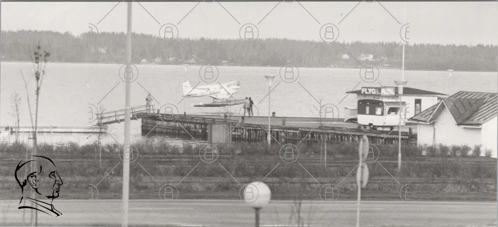 flygplan, sjö, brygga, person, vatten, träd, landskap, båt, hamn, lampa, svartvitt, natur, transport, flygning, sommar, fritid, aktivitet, reflektion, himmel, moln