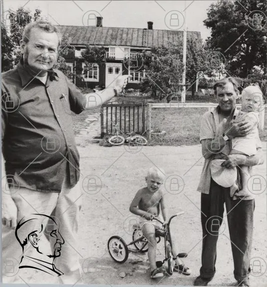man, barn, cykel, hus, trädgård, sommar, familj, gammal, svartvitt, fotografi, lek, utomhus, pojke, baby, vuxen, landskap, traditionell, minnen, historia, landsbygd, gemenskap, skratt, glädje, natur, fritid, tidigt, 1900-tal, nostalgi, samvaro, enkelhet