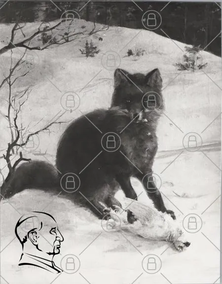 räv, snö, vinter, djur, natur, svart, päls, jakt, landskap, träd, vild, fauna, kallt, vilt, rovdjur, ensam, skog, fot, svans, tyst, stilla, överlevnad, ekosystem, predator, art, djurliv, vildmark, skandinavien, illustration, svartvit