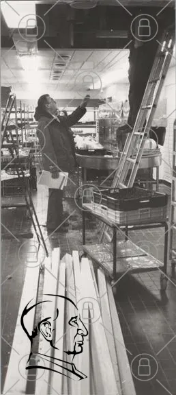 person, arbete, lager, stege, lådor, kontor, inomhus, svartvitt, utrustning, verktyg, hyllor, dokument, industri, miljö, organisation, föremål, golv, belysning, arbetsplats, säkerhet