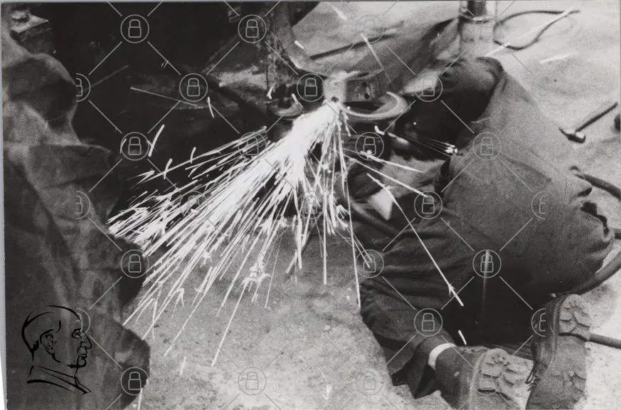 gnistor, svetsning, metallbearbetning, arbete, industri, verkstad, maskiner, säkerhet, skyddsutrustning, hantverk, teknik, metall, ljus, rörelse, precision, arbetsmiljö, professionell, handverktyg, metallskärning, svetsare, arbetskläder