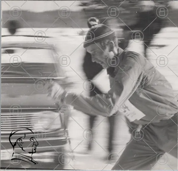 skidåkning, vinter, bil, tävling, sport, snö, man, hand, nummerlapp, mössa, svartvitt, rörelse, publik, landskap, friluftsliv, hastighet, tradition, aktivitet, utomhus, 1900-tal