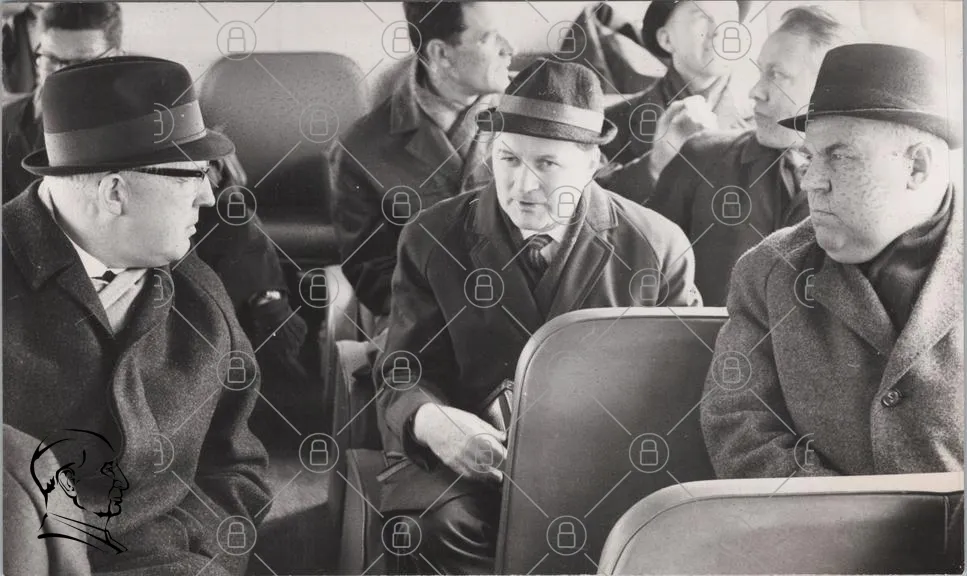 svartvitt, män, hattar, kläder, sittande, inomhus, 1950-tal, ansikten, uttryck, samling, grupp, retro, stil, fotografi, nostalgi, interiör, bänkar, socialt, observation, mänsklig interaktion