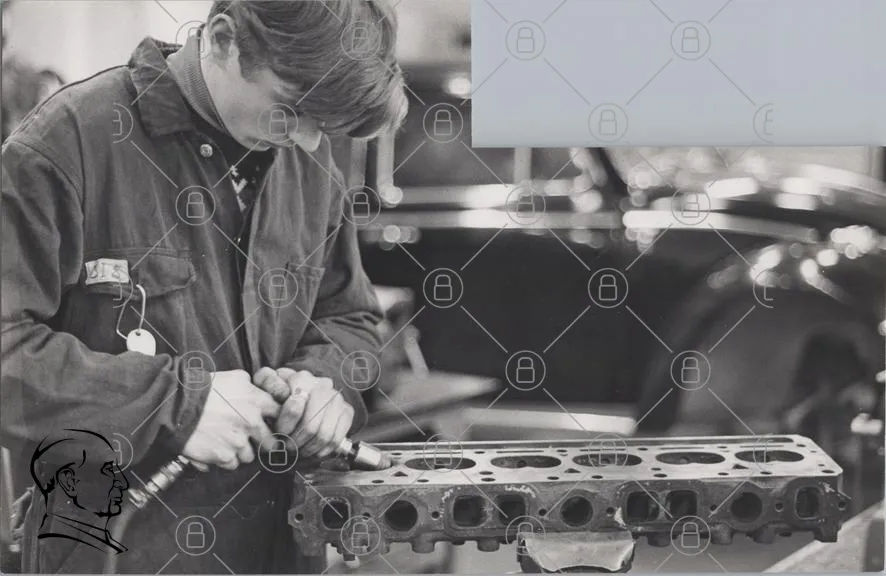 man, verkstad, motor, mekaniker, arbete, verktyg, metall, teknik, industri, svartvitt, fokus, detaljer, maskindelar, hantverk, utbildning, ungdom, precision, professionell, motorblock, mekanisk