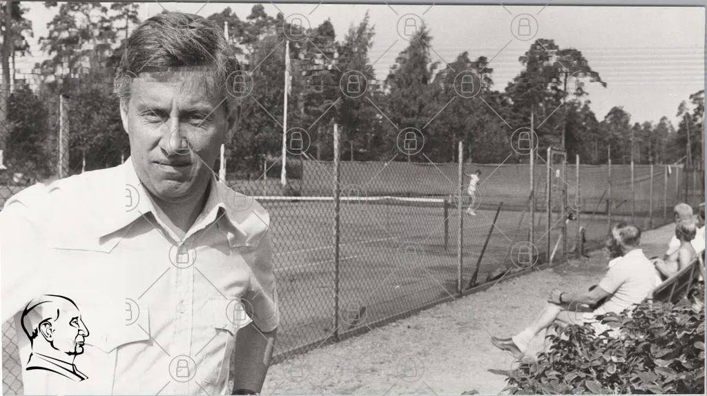 man, tennis, sport, grönska, nät, kläder, svartvitt, utomhus, aktivitet, 1900-tal, träning, fritid, motion, tennisbana, sommar, människa, leende, natur, bakgrund, fotboll, ungdom, tradition, stil, fotografi, nostalgi, sportkläder, hand, ansikte, kroppsspråk, socialt