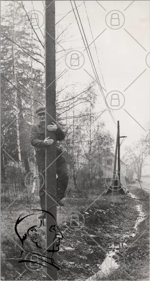 man, stolpe, träd, landskap, svartvitt, gammal, klättra, natur, byggnad, elledningar, skog, historisk, fotografi, 1900-tal, utomhus, by, rör, grönska, höst, ensamt, person, kläder, hatt, trä, väg, stillhet, traditionell, rural, miljö, minnen