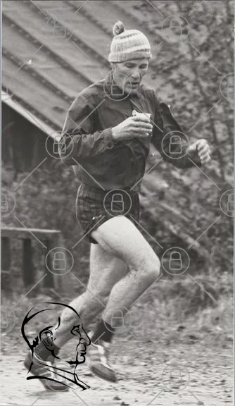 man, löpning, regn, svartvitt, sport, shorts, tröja, utomhus, motion, gammal bild, trä, natur, svett, aktivitet, vintage, 1900-tal, träning, hastighet, energi, fokus, uthållighet