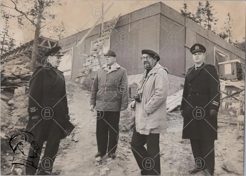 historisk, svartvit, män, byggnad, skog, kläder, hattar, fotografering, 1900-tal, militär, ledare, samarbete, utomhus, grupp, män i kostym, byggarbetsplats, trä, konstruktion, ansiktsuttryck, dokumentation, tidsepok, traditionell, svensk, uniform, män i hatt, fotografi, män i grupp, vintage, retro, historia