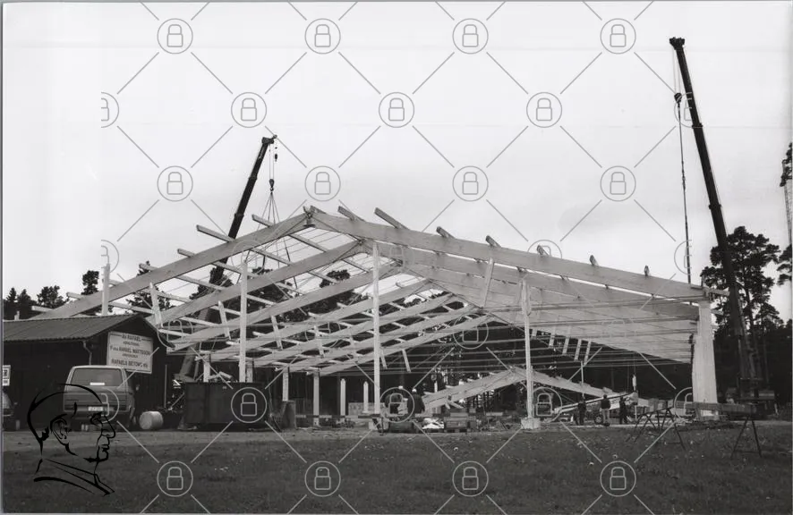 byggarbetsplats, konstruktion, tak, trä, ställning, kran, byggmaterial, arbete, hantverkare, industri, struktur, byggnad, landskap, svartvit, manuell, projekt, samarbete, utomhus, säkerhet, verktyg