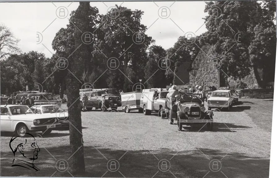 historiska bilar, parkering, svartvit, träd, fordon, människor, gammal teknik, 1900-tal, lastbil, vintage, landskap, grus, samling, retro, transport, militärfordon, bilar, utställning, fordonsshow, park, byggnader, natur, väg, historia, kultur, evenemang, tradition, fototillfälle, nostalgisk, gammaldags, samarbete