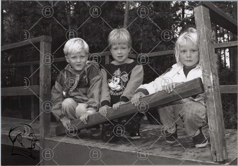 barn, lek, utomhus, trä, plattform, svartvit, kläder, skratt, vänskap, barndom, natur, sommar, pojkar, leende, gemenskap, minnen, glädje, familj, oskuld, lekfullhet