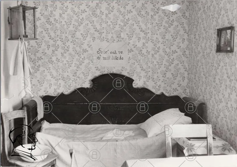 rum, säng, vägg, tapet, blommor, text, svartvitt, möbler, kudde, sängkläder, inredning, gammal, stil, hem, hemtrevligt, väggdekoration, trä, bord, stolar, minimalistisk, retro, vintage, atmosfär, mysigt, skandinavisk, design, konst, kultur, historia