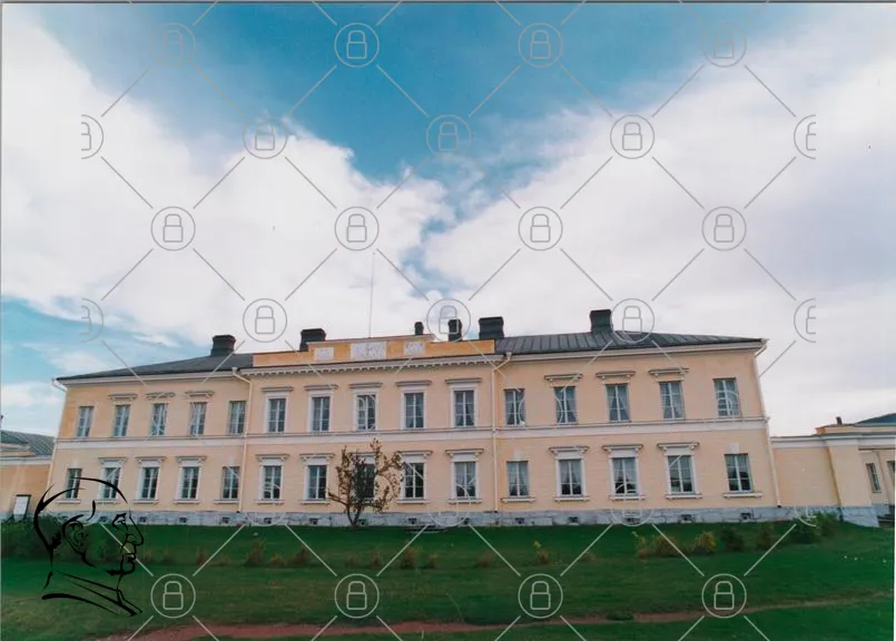 byggnad, fasad, fönster, tak, grönska, himmel, moln, arkitektur, gult, träd, gräs, landskap, utomhus, historisk, stil, struktur, panorama, vy, sommar, ljus