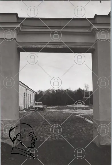 port, byggnad, bil, grus, väg, träd, himmel, svartvit, landskap, arkitektur, gård, vinter, sten, passage, utsikt, natur, parkering, asfalt, gammal, historisk, utomhus, tomt, rutor, fönster, entré, gårdsplan, snö, skog, vägkant