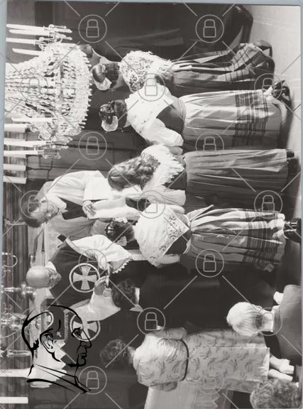 ceremoni, kyrka, kläder, tradition, folkdräkt, bön, ljus, präster, fest, samling, högtid, gemenskap, ritual, barn, vuxna, kultur, historia, andakt, musik, festligheter, religiös, gemensam, firande, skådespel, dekoration, fotografi, svartvit, 1900-tal, Sverige, samhälle