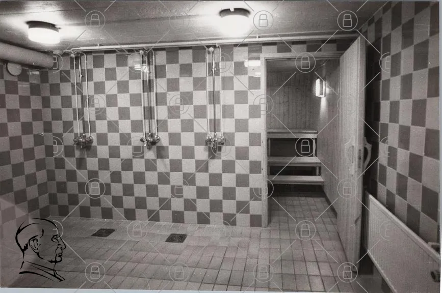 badrum, dusch, kakel, rör, vatten, väggar, golv, belysning, hyllor, svartvit, inredning, renlighet, utrymme, design, funktionalitet, modern, retro, byggnad, interiör, sanitär, rum, duschhuvud, plattor, installation, vattenledningar, duschutrymme, minimalistisk, stil, struktur