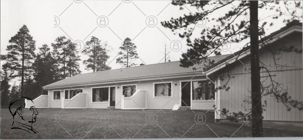 hus, byggnad, träd, gräsmatta, fönster, tak, entré, landskap, svartvitt, natur, arkitektur, bostad, utomhus, sommar, svensk, stil, gård, väggar, dörrar, takpannor, trädgård, lugn, miljö, hem, modern, design, enkelhet, ljus, utrymme, vy